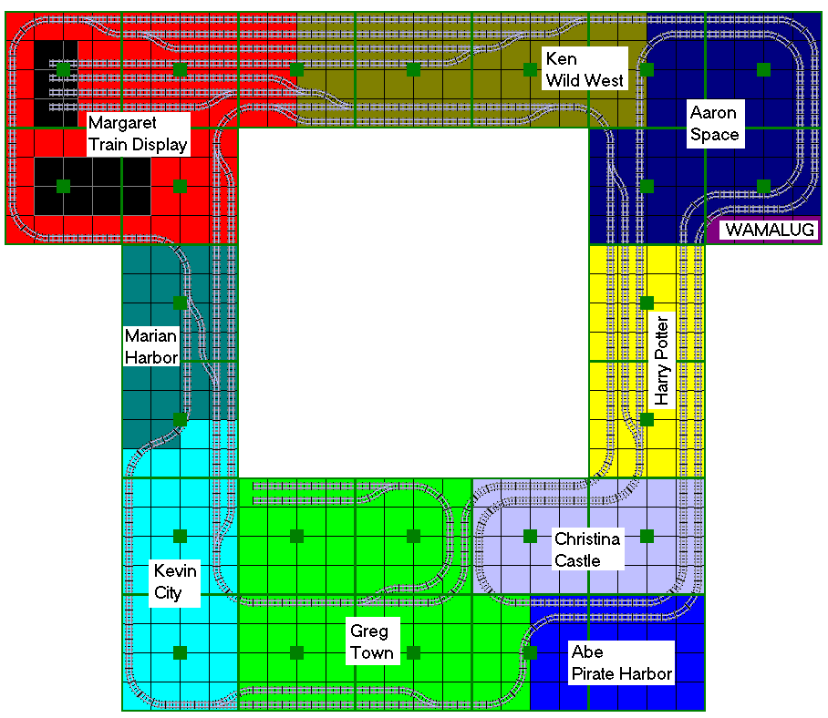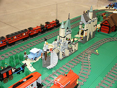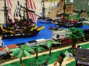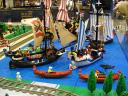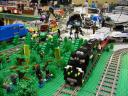 We invited participants to decorate different sections of the layout with themes which we don’t usually include in a display. Besides the areas of Kevin’s City and Greg’s Town, we had displays in the theme of Pirates from Abe, Castle and Harry Potter from Christina, Space from Aaron and Bob and guest Pat, Wild West from Ken, and Boats from Marian.