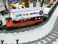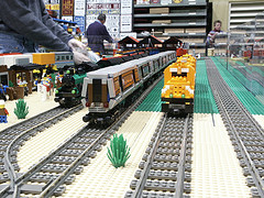 We had a display at the Greenberg’s Train Show at The Show Place Arena. A particular highlight of the juxtapositioning of multiple themes was guest Pat Bunn’s display of mecha overrunning the Space section and encroaching on the Castle section while crossbow archers stood bravely in defense.