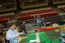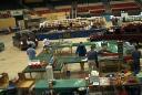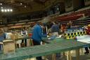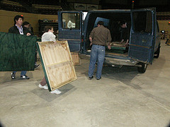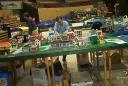 Michael had the presence of mind to document our “process” of setting up on Friday. Not much can happen until Kevin arrives with the van and the tables. Our layout was by Bob Hayes.
