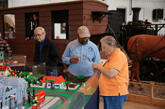 Setup by Margaret D. Keys, Edward T. Kohl, Clifton D. Chambers, Sr., Marcia L. Harris, Walter M. Lee, and Todd Hardy of Classic Plastic Bricks. Contributors to the display for at least one day-part over the two weekends: Abraham Friedman, Margaret D. Keys, Michael C. Harrod, Edward T. Kohl, J. Michael Collaco, Clifton D. Chambers, Sr., Arthur Gordon, Robert J. Gurskey, Randy Hamilton, Doug Foreman, Marcia L. Harris, Walter M. Lee, Chuck Viggiani, Thomas Johnston. Participation varied daily. Additional track and baseplates from Tony Perez.